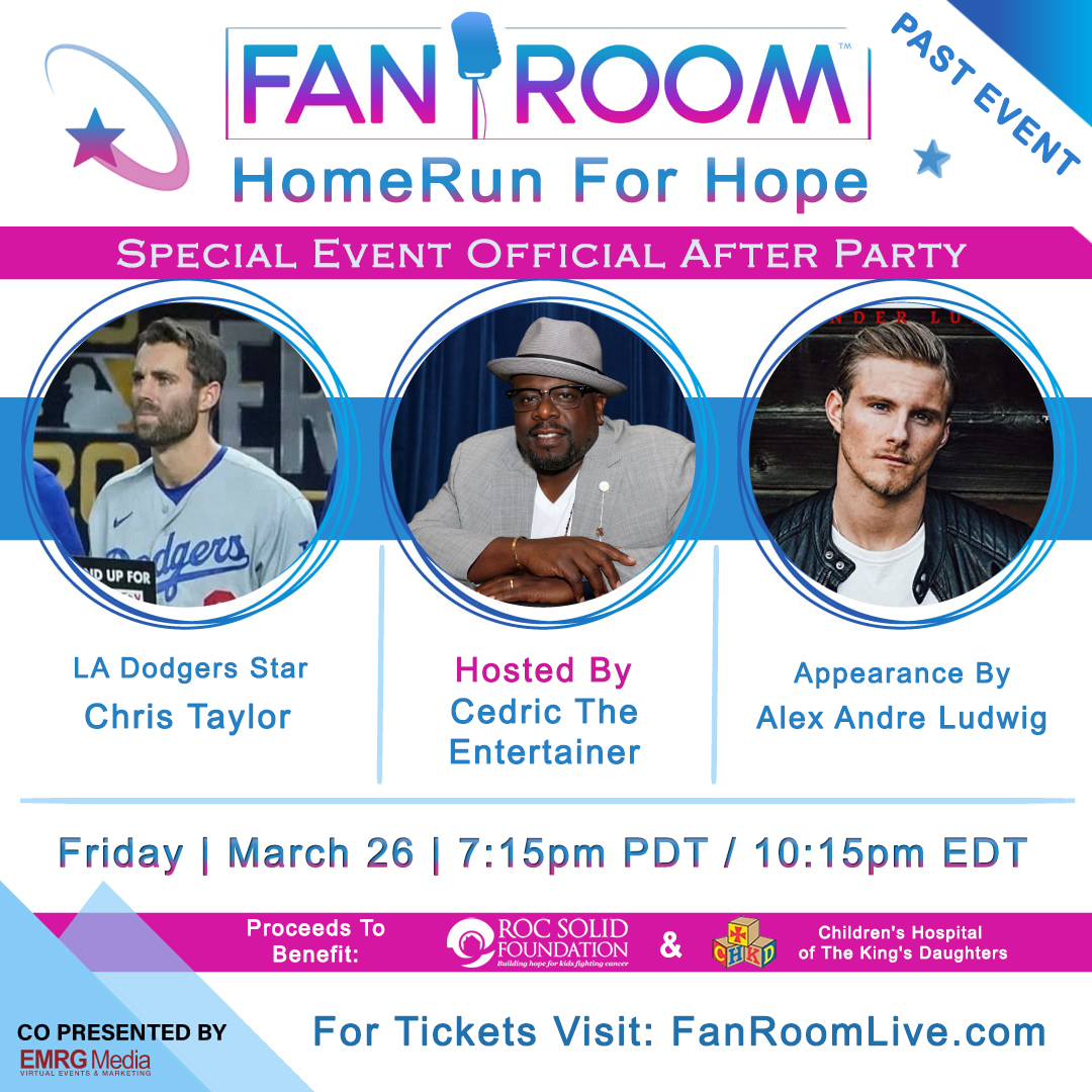 FanRoom Live is a new interactive virtual event series online, where Fans get to meet their favorite actors, comedians, athletes and musicians in a group town hall style meet and greet with Q&As. FanRoom Live is bringing something special and unique to the online world for Fans worldwide!